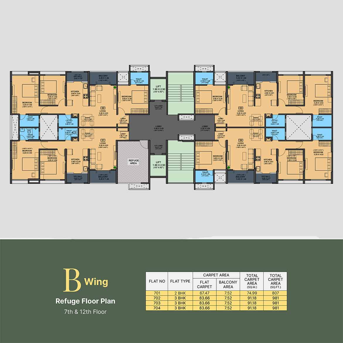 - Dado Tiles in the Washroom, Toilets & Above Kitchen Platform Upto Beam Level (7’00”)